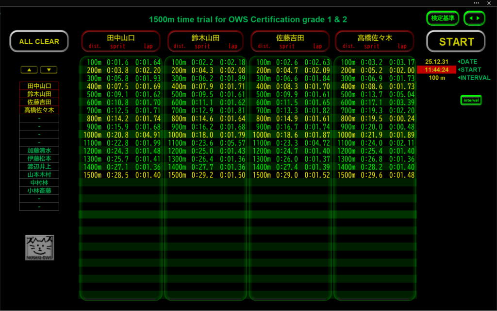 - 計測_インターバル(1の改良版)+1500mタイムトライアル for OWS検定(2025年12月更新)最新